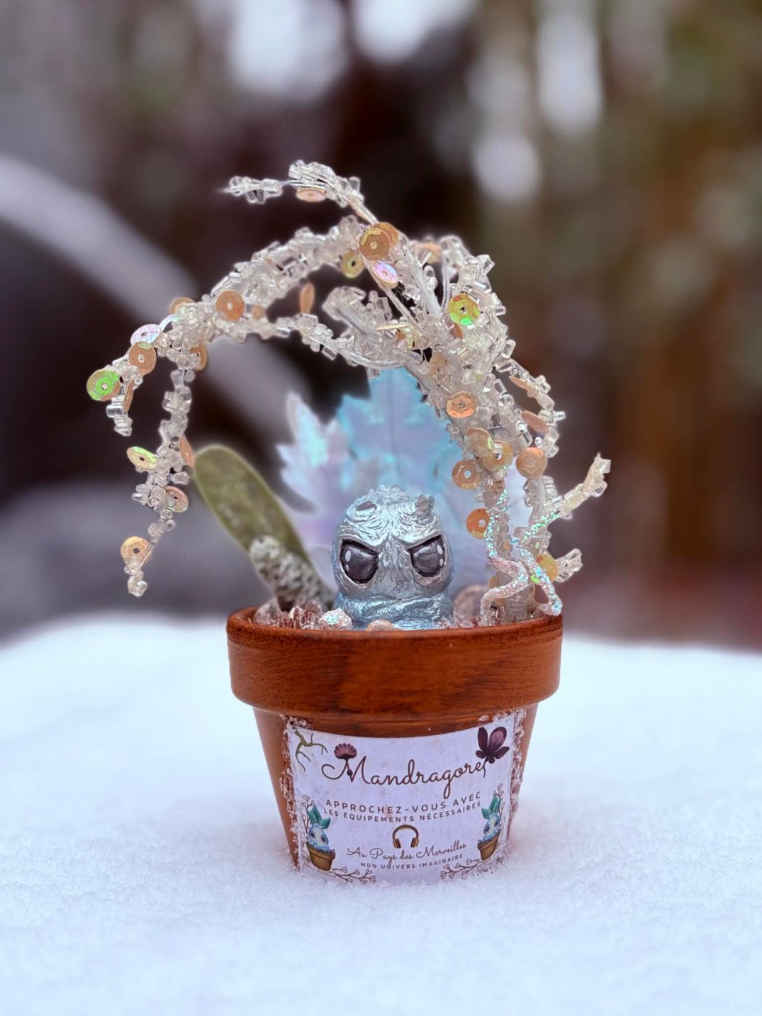 Nées de la terre ancienne, les mandragores sont de petites créatures végétales au caractère bien trempé. Un peu fâchées mais profondément magiques, elles veillent sur leur pot comme sur un refuge sacré. Chaque mandragore appartient à une série saisonnière — automne ou hiver — et puise sa force dans l’énergie de la terre, des racines et des cycles de la nature. Adoptée avec douceur, elle apportera protection, mystère et magie végétale à ton foyer.